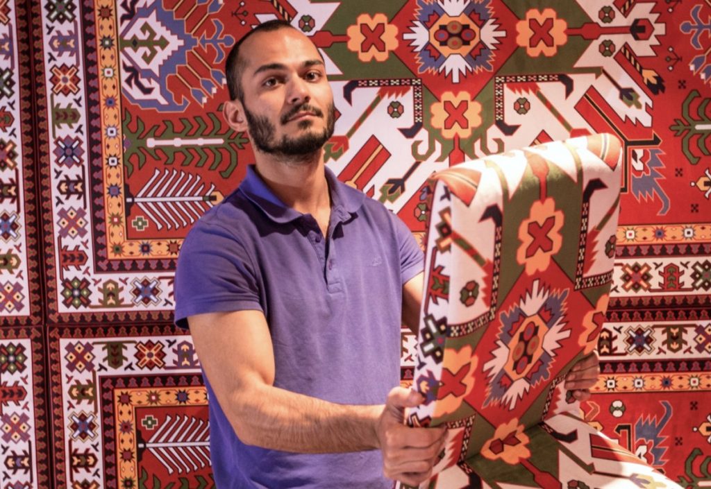 Vaxtım bitdiyindən mən başqa studiyaya keçdim və burada posterə bənzər monoxromatik pleksiqlasdan olan layihələrinin birinin üzərində işləyən YARAT-ın digər rezidenti olan Orxan Hüseynovla qarşılaşdım. Keramik dizayn üzrə mütəxəssis olan O.Hüseynov diqqətini Azərbaycanın milli ənənələrinə və tarixinə, həmçinin gündəlik həyat oyunlarda cəmləşdirən instalyasiya, rəsm və videolar üzərində işləyir.